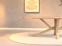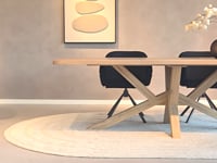 Het onderstel van de Belluno tafel is uitgevoerd in massief eikenhout en heeft een unieke vorm: een speelse kruising van schuine poten, geïnspireerd op de klassieke spinpoot. Deze dynamische pootconstructie geeft de tafel een opvallend karakter, terwijl de open vorm zorgt voor een ruimtelijk en luchtig effect. De natuurlijke houtstructuur en de meegekleurde afwerking zorgen voor een harmonieus geheel dat in elk interieur tot zijn recht komt. Op zoek naar een ander onderstel? De Le Mans tafel biedt dezelfde configuratie, maar laat onderaan direct alle onderstellen zien!